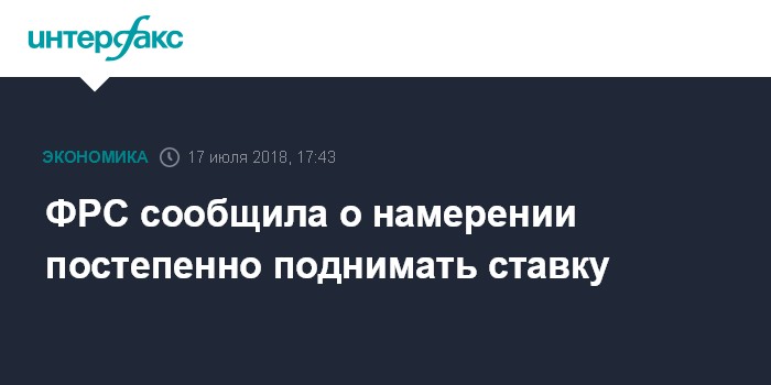 Москва. 17 июля. INTERFAX.RU - Федеральная резервная система (ФРС) намерена продолжать постепенное повышение базовой процентной ставки, чтобы удерживать инфляцию около целевого уровня при сохранении сильного рынка труда.