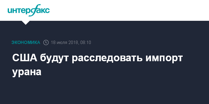 Москва. 18 июля. INTERFAX.RU - Администрация президента США Дональда Трампа планирует расследовать, не нарушают ли поставки урана на американский рынок интересы национальной безопасности, сообщило агентство Bloomberg со ссылкой на свои источники.