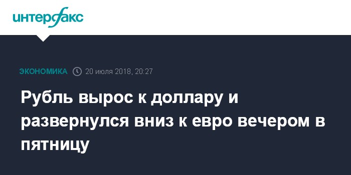 Москва. 20 июля. INTERFAX.RU - Доллар США снижается, евро развернулся вверх на Московской бирже в пятницу вечером, рубль лишь слегка меняется к бивалютной корзине после падения в предыдущие дни.