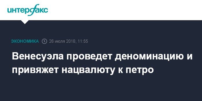 По словам главы государства, новая валюта получит название "суверенный боливар" и будет привязана к криптовалюте петро. Петро должно проникнуть во всю внутреннюю и внешнюю экономическую активность Венесуэлы и стать одним из стабилизирующих столпов национальной финансовой системы", - сказал Мадуро.