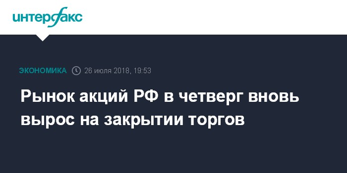 Рынок акций РФ в четверг вновь вырос на закрытии торгов