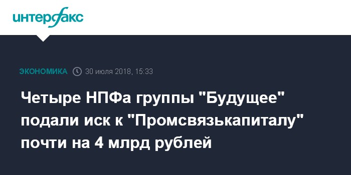 Четыре НПФа группы "Будущее" подали иск к "Промсвязькапиталу" почти на 4 млрд рублей