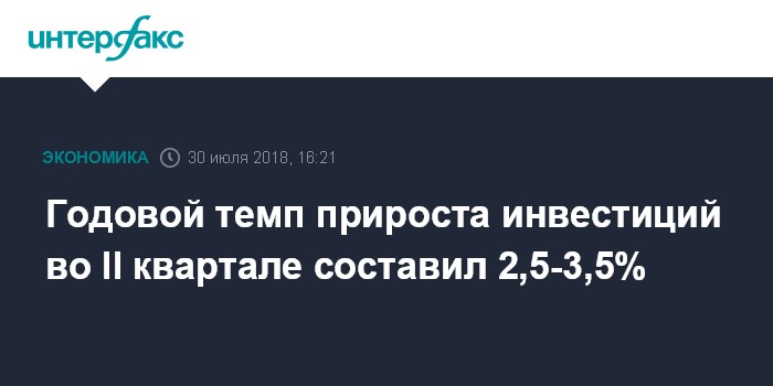 Годовой темп прироста инвестиций во II квартале составил 2,5-3,5%