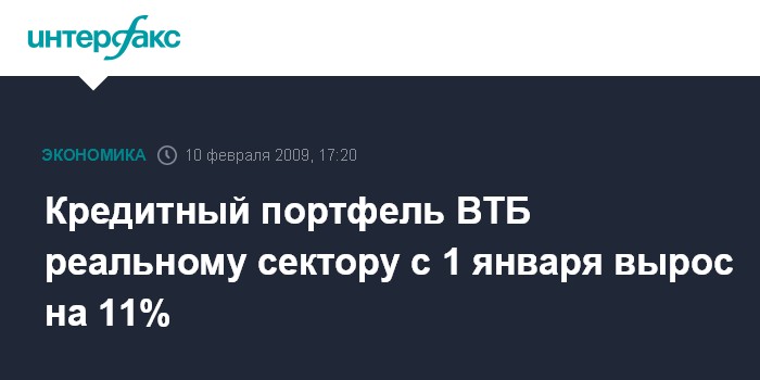 Кредитный портфель ВТБ реальному сектору с 1 января вырос на 11%