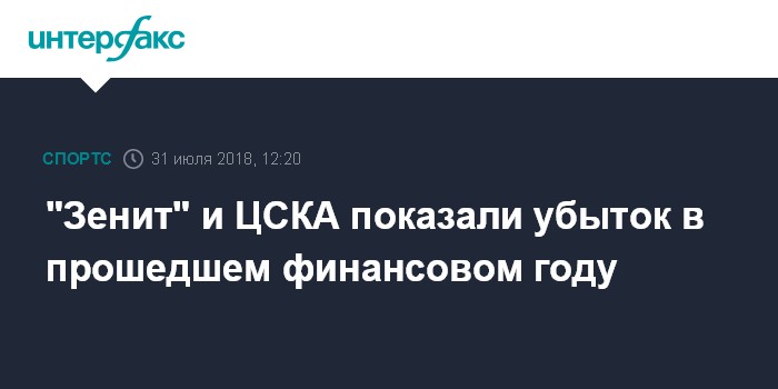 "Зенит" и ЦСКА показали убыток в прошедшем финансовом году
