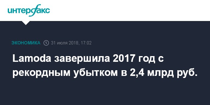 Москва. 31 июля. INTERFAX.RU - Интернет-ритейлер Lamoda завершил прошлый год с рекордным убытком, следует из данных аналитической системы "СПАРК-Интерфакс".