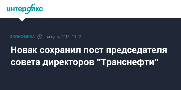 Новак сохранил пост председателя совета директоров "Транснефти"