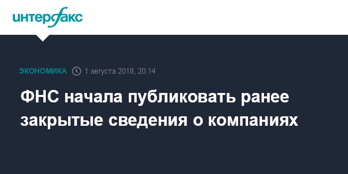 Москва. 1 августа. INTERFAX.RU - Федеральная налоговая служба (ФНС) опубликовала первые наборы сведений о компаниях, которые раньше относились к налоговой тайне.