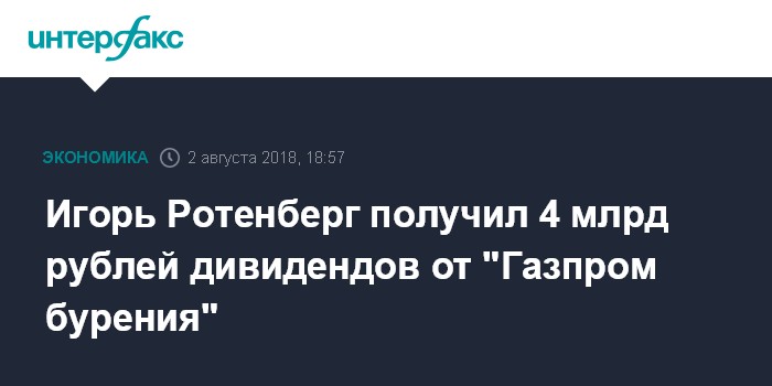Игорь Ротенберг получил 4 млрд рублей дивидендов от "Газпром бурения"