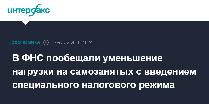 Москва. 3 августа. INTERFAX.RU - Введение специального налогового режима для самозанятых граждан позволит уменьшить фискальную нагрузку на них, заявил журналистам замглавы ФНС Дмитрий Сатин.