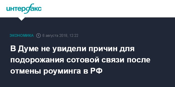 "Высказываемые опасения о том, что с отменой роуминга операторы поднимут цены на услуги связи, не имеют серьезных экономических оснований. Емкость инфраструктуры магистральных каналов связи, через которые передаются в том числе голосовые вызовы операторов мобильной связи, колоссальна, и в большей своей части загружена интернет-трафиком. Кроме того, жесткая конкуренция за абонента вынуждает сотовые компании сохранять низкие цены на свои услуги", - добавил парламентарий.