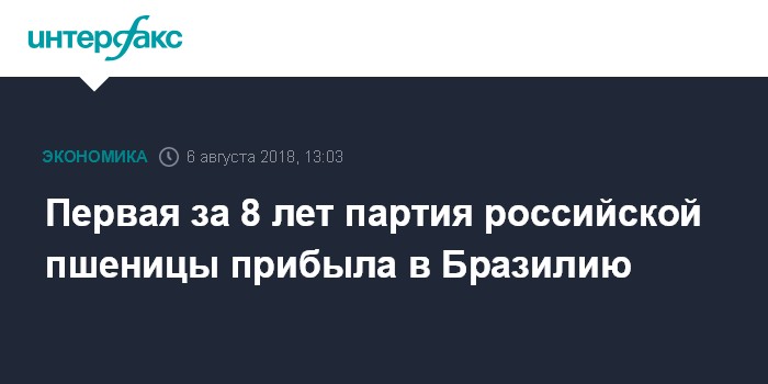 В декабре 2017 года власти Бразилии отменили ограничения на импорт российской пшеницы, а весной текущего года смягчили требования к ней.