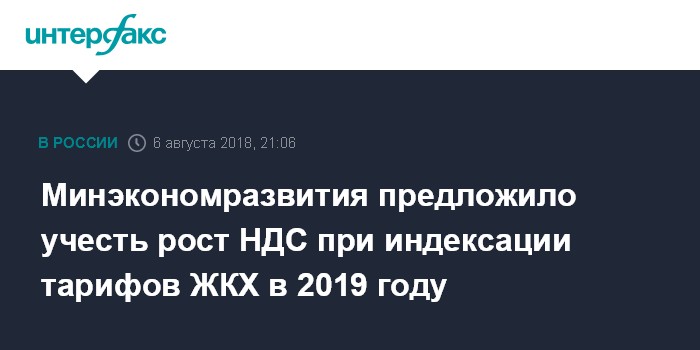 Минэкономразвития предложило учесть рост НДС при индексации тарифов ЖКХ в 2019 году