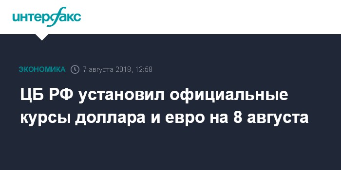 ЦБ РФ установил официальные курсы доллара и евро на 8 августа