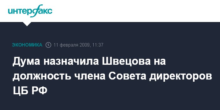 Дума назначила Швецова на должность члена Совета директоров ЦБ РФ
