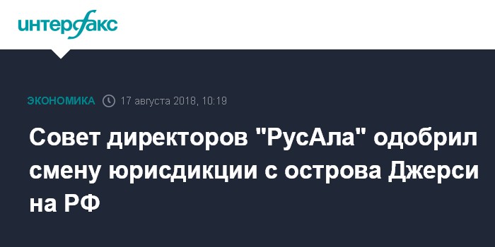 Совет директоров "РусАла" одобрил смену юрисдикции с острова Джерси на РФ