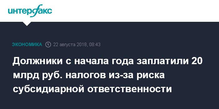 Должники с начала года заплатили 20 млрд руб. налогов из-за риска субсидиарной ответственности