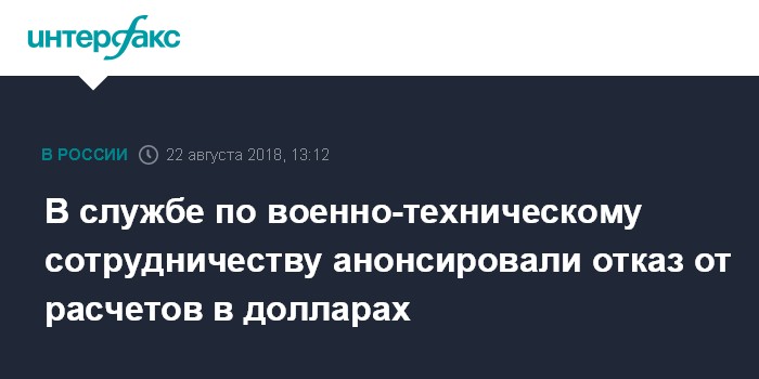 В службе по военно-техническому сотрудничеству анонсировали отказ от расчетов в долларах