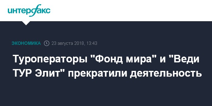 Туроператоры "Фонд мира" и "Веди ТУР Элит" прекратили деятельность