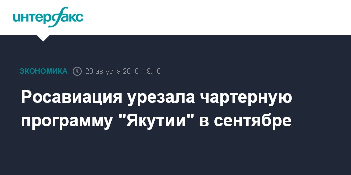 Москва. 23 августа. INTERFAX.RU - Росавиация предписала авиакомпании "Якутия" сократить чартерную программу в сентябре, сообщили в Ассоциации туроператоров (АТОР).