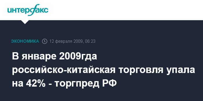 В январе 2009гда российско-китайская торговля упала на 42% - торгпред РФ