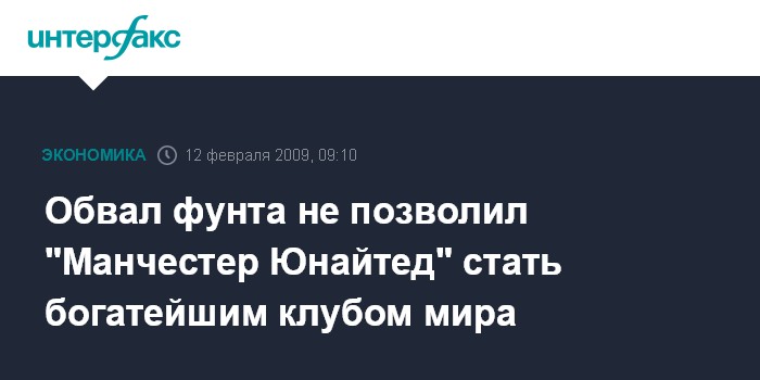 Москва. 12 февраля. INTERFAX.RU - Резкое падение курса фунта стерлингов не позволило "Манчестер Юнайтед" занять первое место в рейтинге богатейших футбольных клубов мира.
