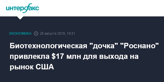 Биотехнологическая "дочка" "Роснано" привлекла $17 млн для выхода на рынок США
