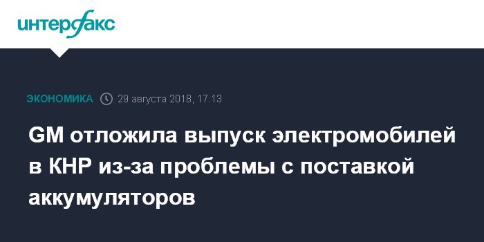 GM отложила выпуск электромобилей в КНР из-за проблемы с поставкой аккумуляторов