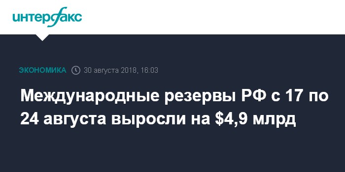 Международные резервы РФ с 17 по 24 августа выросли на $4,9 млрд