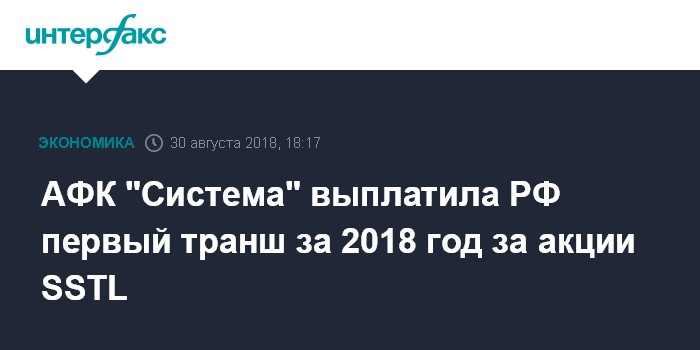 АФК "Система" выплатила РФ первый транш за 2018 год за акции SSTL