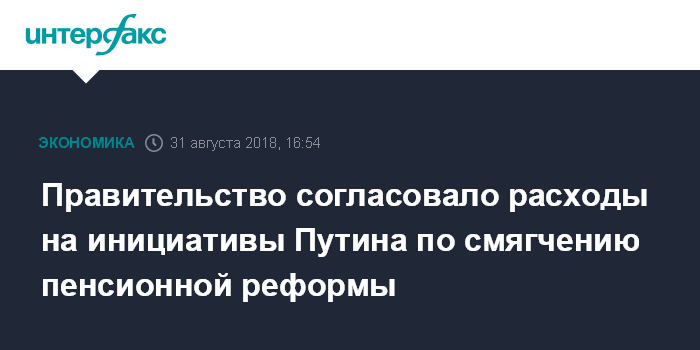 Москва. 31 августа. INTERFAX.RU - Правительство на совещании в пятницу у премьер-министра РФ Дмитрия Медведева согласовало расходы по инициативам президента в связи со смягчением пенсионной реформы, все это финансово обеспечено законом о бюджете, сообщила вице-премьер Татьяна Голикова.