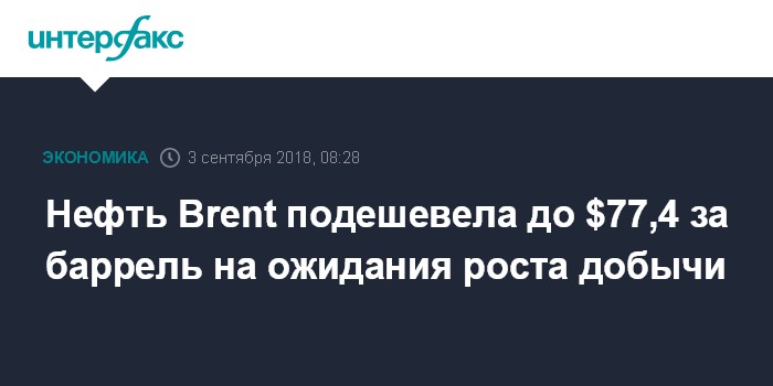 Нефть Brent подешевела до $77,4 за баррель на ожидания роста добычи