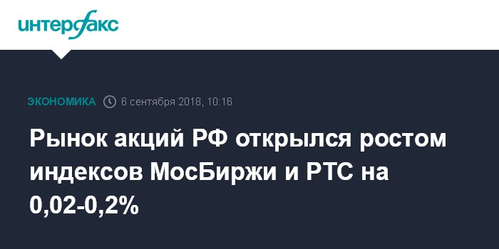Рынок акций РФ открылся ростом индексов МосБиржи и РТС на 0,02-0,2%