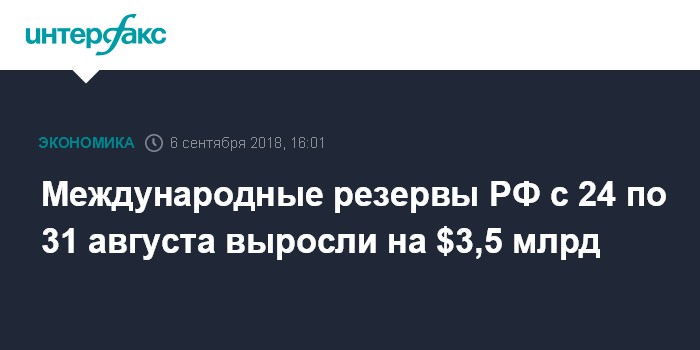 Международные резервы РФ с 24 по 31 августа выросли на $3,5 млрд