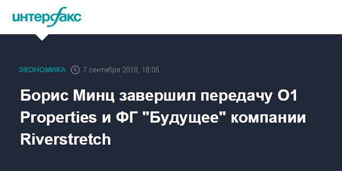 Борис Минц завершил передачу O1 Properties и ФГ "Будущее" компании Riverstretch