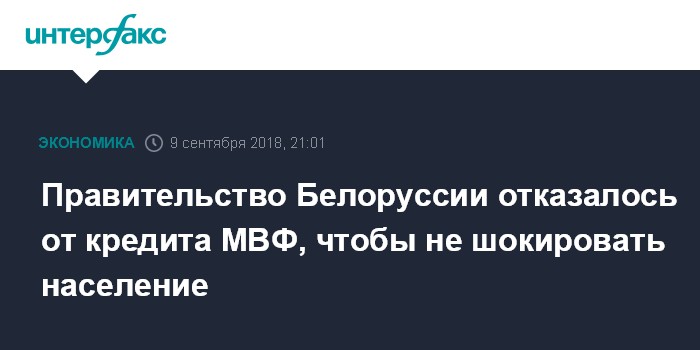 Москва. 9 сентября. INTERFAX.RU - Правительство Белоруссии отказалось от кредитной программы МВФ из-за возможного шока для населения, заявил в вечернем эфире телеканала СТВ министр финансов Беларуси Максим Ермолович.