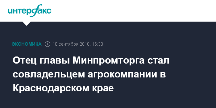 Отец главы Минпромторга стал совладельцем агрокомпании в Краснодарском крае