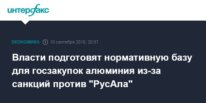 Власти подготовят нормативную базу для госзакупок алюминия из-за санкций против "РусАла"