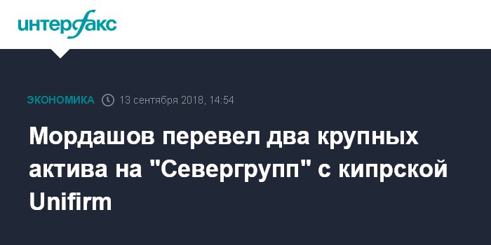 Мордашов перевел два крупных актива на "Севергрупп" с кипрской Unifirm