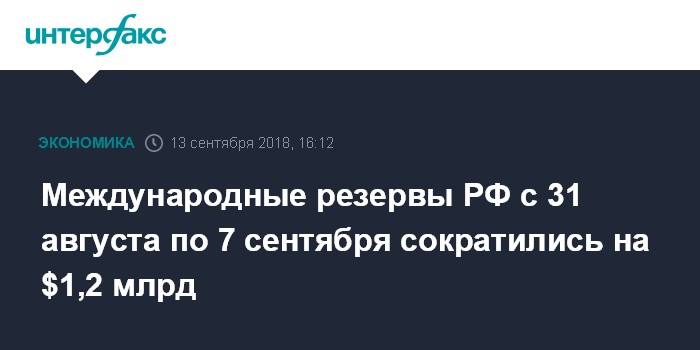 Международные резервы РФ с 31 августа по 7 сентября сократились на $1,2 млрд
