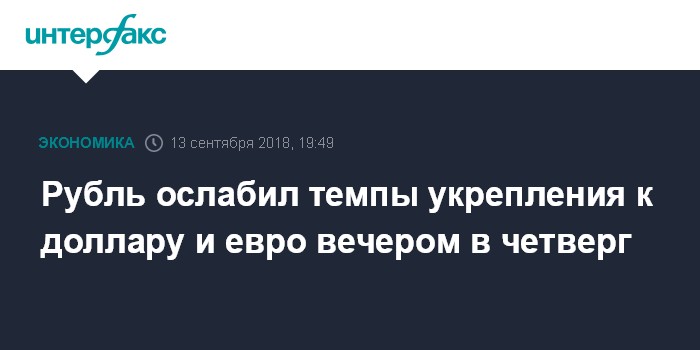 Как отмечают эксперты "Интерфакс-ЦЭА", рубль растет к доллару и евро на вечерних торгах, хотя и несколько утратил наблюдавшиеся ранее темпы после появления сообщений о подготовке США "жесткого" пакета антироссийских санкций, связанных с отравлением в Солсбери. В момент появления данной новости рубль резко снизился, но быстро восстановил большую часть утраченных позиций.