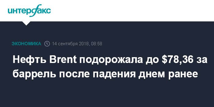 Нефть Brent подорожала до $78,36 за баррель после падения днем ранее