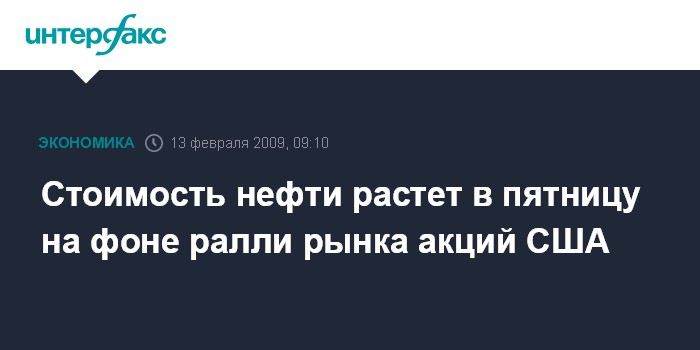 Москва. 13 февраля. INTERFAX.RU - Стоимость нефти повышается в пятницу на фоне роста фондовых индексов в США, связанного с ожиданиями, что правительство страны увеличит помощь потребителям и объявит о программе поддержки рынка жилья, сообщило агентство Bloomberg.