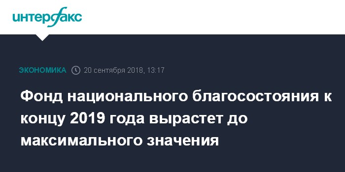 Фонд национального благосостояния к концу 2019 года вырастет до максимального значения