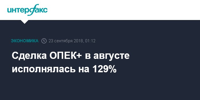 Сделка ОПЕК+ в августе исполнялась на 129%