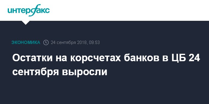 Остатки на корсчетах банков в ЦБ 24 сентября выросли
