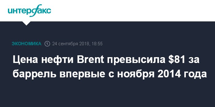Москва. 24 сентября. INTERFAX.RU - Цены на нефть эталонных марок уверенно растут в ходе торгов в понедельник на заявлениях ОПЕК+, в результате чего цена марки Brent поднялась выше отметки $81 за баррель впервые с ноября 2014 года.