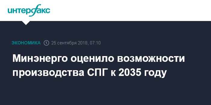 Москва. 25 сентября. INTERFAX.RU - Производство сжиженного природного газа к 2035 году в России может увеличиться в 4 раза до 83 млн тонн в год, заявил директор департамента добычи и транспортировки нефти и газа Минэнерго РФ Александр Гладков.