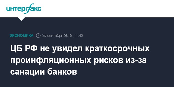 ЦБ РФ не увидел краткосрочных проинфляционных рисков из-за санации банков