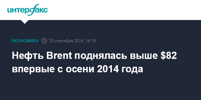 Москва. 25 сентября. INTERFAX.RU - Цены на нефть эталонных марок продолжают рост в ходе торгов во вторник, Brent поднялась выше $82 за баррель впервые с осени 2014 года на оптимистичных прогнозах спроса и ожиданиях, что Иран сократит поставки на нефти на мировой рынок из-за санкций США.